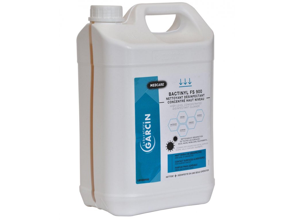 Bactinyl FS 900 5 l je výkonný dezinfekční prostředek na bázi kvarterních amoniových solí (KAS) určený pro vyšší stupeň dezinfekce v potravinářských provozech, kuchyních, skladech a potravinářské výrobě. Zajišťuje efektivní sporicidní a baktericidní účinek na všechny typy povrchů.